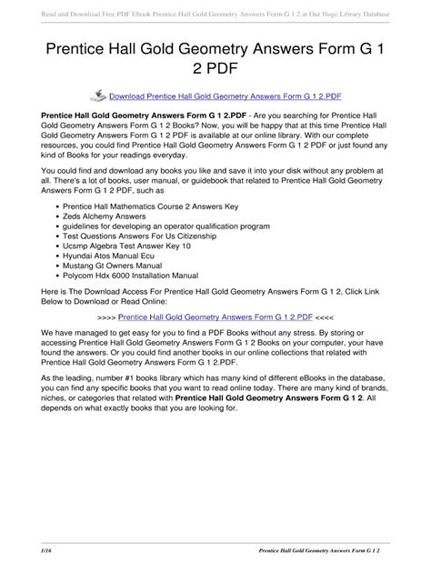 Read Online Answers For Prentice Hall Geometry Workbook Form G PDF rtf Gutenberg